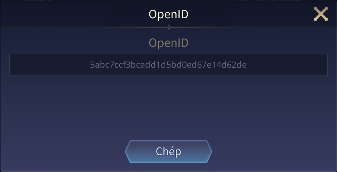 Bước 3: Ấn vào OpenID, dãy chữ số OpenID của bạn sẽ hiện ra, chọn Chép để lưu ngay vào máy